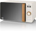 La gama nórdica Swan es una colección inspirada en el conocido estilo Scandi que utiliza las texturas de madera blanda y los colores neutros de Suecia, Noruega, Dinamarca y Finlandia para llevar el verdadero estilo de scandinavia a su hogar. CARACTERÍSTICAS800W / Digital / 20 Litros / 6 niveles / Temporizador / Efecto espejoCon 800 W y 6 niveles de potencia, incluida una función de descongelación, podrá seleccinar la temperatura perfecta para cocinar o calentar toda una variedad de alimentos en muy poco tiempo.La capacidad de 20 litros proporciona suficiente espacio para cocinar comida preparada o incluso descongelar carne del congelador.Plato giratorio de vidrio de 270 mm extraible y fácil de limpiar donde puede colocar fácilmente un plato grande, su comida se cocina de manera uniforme y se calienta perfectamente en todo momento.Señal acústica de finalización de la cocción le avisa cuando la comida está lista.Práctico reloj digital y su función de temporizador, puede vigilar la cocción de sus alimentos mientras realiza otras tareas.Función de descongelación le permite cocinar comidas a partir ingredientes congelados pudiendo tener comida preparada para toda la semana y pan para tostadas matutinas.Microondas robusto y hecho para durar. Con un tacto suave y elegante, cuerpo de color mate y combina el efecto madera en el asa y en la rueda de selección de temperatura.Disfrute de una deliciosa comida en minutos, incluso desde el congelador.Seis niveles de potenciaGracias a los 6 niveles de potencia, que incluyen la función de descongelación, cocinar comidas deliciosas para toda la familia es rápido y fácil cuando dispones de poco tiempo. Si necesita calentar las sobras de la cena de la noche anterior o descongelar la carne para la cena, puede seleccionar fácilmente la función y el tiempo que necesites utilizando la rueda manual.20 litros de capacidadEl microondas ofrece una capacidad de 20 litros. Proporciona suficiente espacio para cocinar una comida preparada o descongelar alimentos directamente del congelador. Puede utilizar la temperatura más baja, para calentar los platos de la cena en su momento justo y mantener calientes los alimentos. El plato giratorio extraible de vidrio de 270 mm de diámetro y el interior metálico hace que sea fácil de limpiar, eliminando todos los restos de la preparación de alimentos.Ajuste de descongelamiento ¿Se olvidó de sacar la cena de esta noche del congelador? gracias a la función de descongelación, puede descongelar su comida en minutos. Esta función es útil tanto para descongelar comidas preparadas como los ingredientes congelados para la preparación de comida para toda la semana, incluso pan para las tostadas de la mañana. La señal acústica de finalización de la cocción también le avisará cuando su comida esté lista.