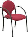 PIQUERAS Y CRESPO Pack de 2 sillas confidente ergonómica con brazos fijos incorporados, apilable y estructura en color negro  Silla confidente de 4 patas con brazos incorporados en la estructura. Es una silla elegante, sencilla y resistente, se adapta a cualquier sala de espera o recepción de clientes así como al hogar. Es apilable hasta 3 alturas     Detalles técnicos  Respaldo ergonómico para una mejor adaptación a la espalda.  Respaldo exterior de PVC de 2 mm de grosor.  Espuma de 50 mm de grosor y 20 kg/m3 de densidad   Asiento ergonómico para una mayor comodidad del usuario.  Espuma de 50 mm de grosor y 25 kg/m3 de densidad  Asiento y respaldo tapizados en tejido BALI color granate Brazos fijos incorporados en la estructura  Estructura en color negro  Estructura de tubo oval de 30x15 mm en pintura epoxi  Apilable hasta 3 alturas   Otros detalles  Favorece una buena postura integral para evitar posibles problemas de espalda  Ergonómica  24 meses de garantía  FABRICACIÓN ESPAÑOLA NO REQUIERE MONTAJE