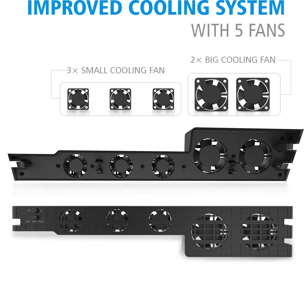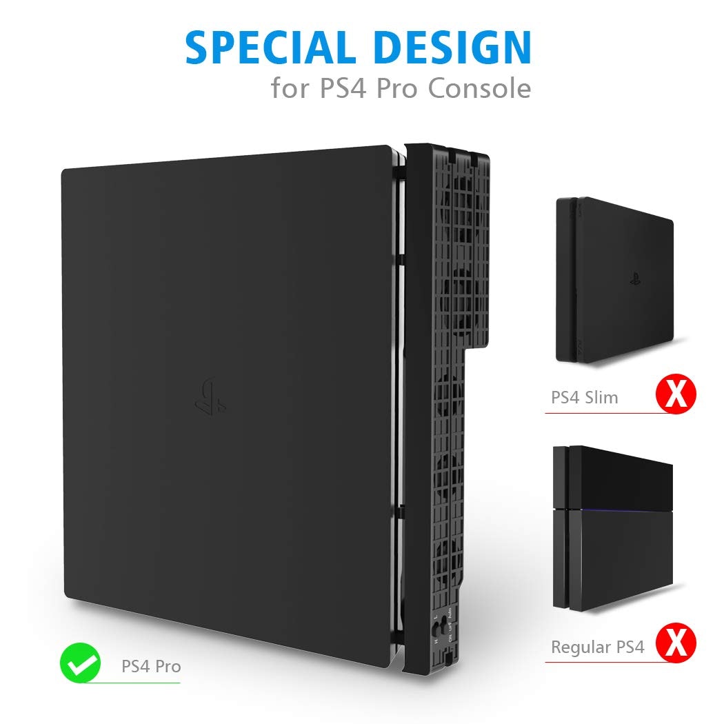 Especialmente diseñado: este ventilador de refrigeración solo funciona con PS4 Pro cuando la temperatura supera los 38 ?.Fácil de instalar: simplemente hace clic en su lugar.DC 5V desde el puerto USB de la consola, no se necesitan herramientas adicionales.Gire el interruptor a ""TURBO"" o ""SLOW"" - Con velocidades de ventilador baja / alta y botón de control de modo Auto / Manual..Tipo de ventilador: DC 5V 0.15A, 10000 ± 10% RPM..Mantenga su juego funcionando sin problemas con este ventilador de refrigeración PS4 Pro. La potente consola PS4 Pro funciona más caliente que la PS4 y la PS4 Slim, lo que hace que este turbo cooler sea una compra obligada para cualquier jugador de PS4 Pro. Diseñado para ser económico, ecológico y fácil de instalar, y funciona a temperaturas de funcionamiento superiores a 38 ° C.
