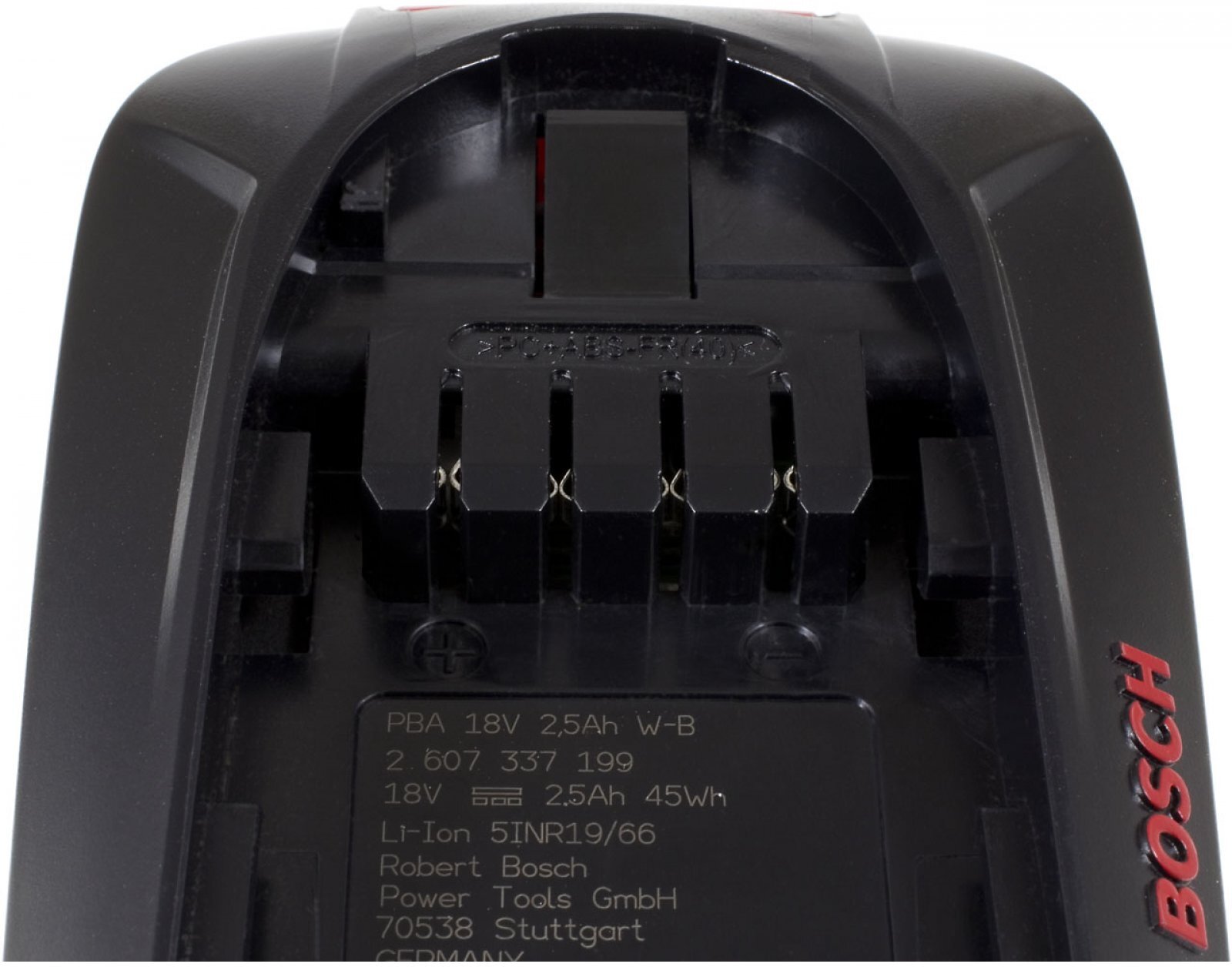 Batería de Alta Capacidad para Bosch Soplador de hojas ALB 18 Original 2500mAh (Solo para cargador AL 1830 CV), 18V, 2500mAh/45Wh, Li-Ion, recargable. DETALLES: Tensión: 18V. Capacidad en amperios hora: 2500mAh. Energía en vatios por hora: 45Wh. Peso aprox.: 326 g. Dimensiones: 109mm x 81mm x 55,5mm. Tecnología: Li-Ion. Color: Negro. Original. Nuevo. ¡ATENCIÓN: Solo compatible con Cargador AL 1830 CV!. ///Cualquier empresa, nombre de marca y marca son propiedad de sus respectivos dueños y se utilizan solamente para la identificación inequívoca del artículo de recambio
