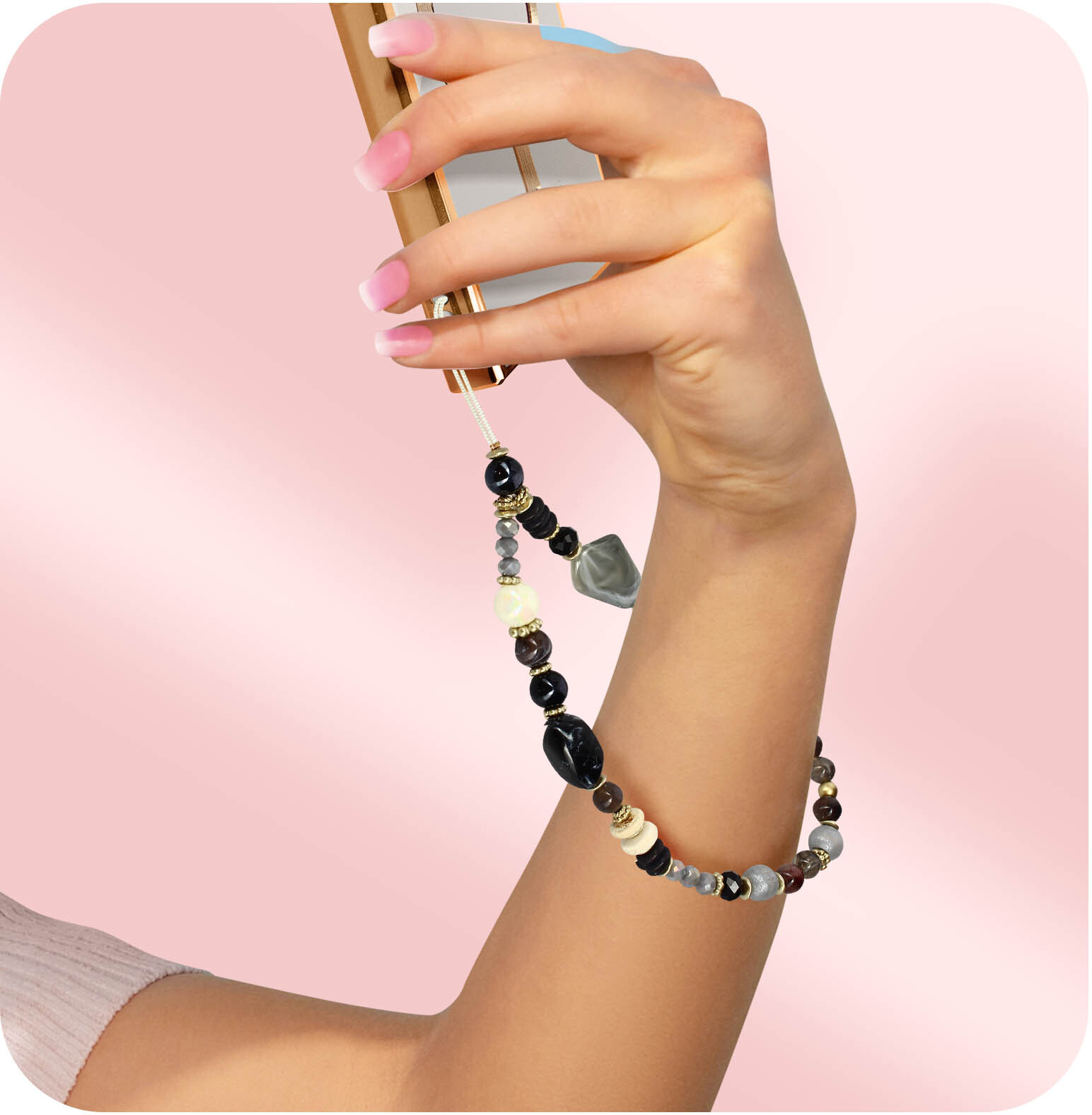 Pulsera de teléfono de perlas de Tahití negras de 30 cm para llevar tu smartphone alrededor de la muñeca. Una joya que aporta un estilo elegante y exótico a su teléfono y a su look. El bucle de sujeción proporciona un cierre seguro y discreto. • Características y Puntos fuertes: Descubra esta joya de teléfono con perlas: práctica, encantadora y elegante.. De perlas de Tahití, para un toque de elegancia y exotismo. Una joya imprescindible con una circunferencia de 30 cm. mprescindible para tener el smartphone siempre a mano