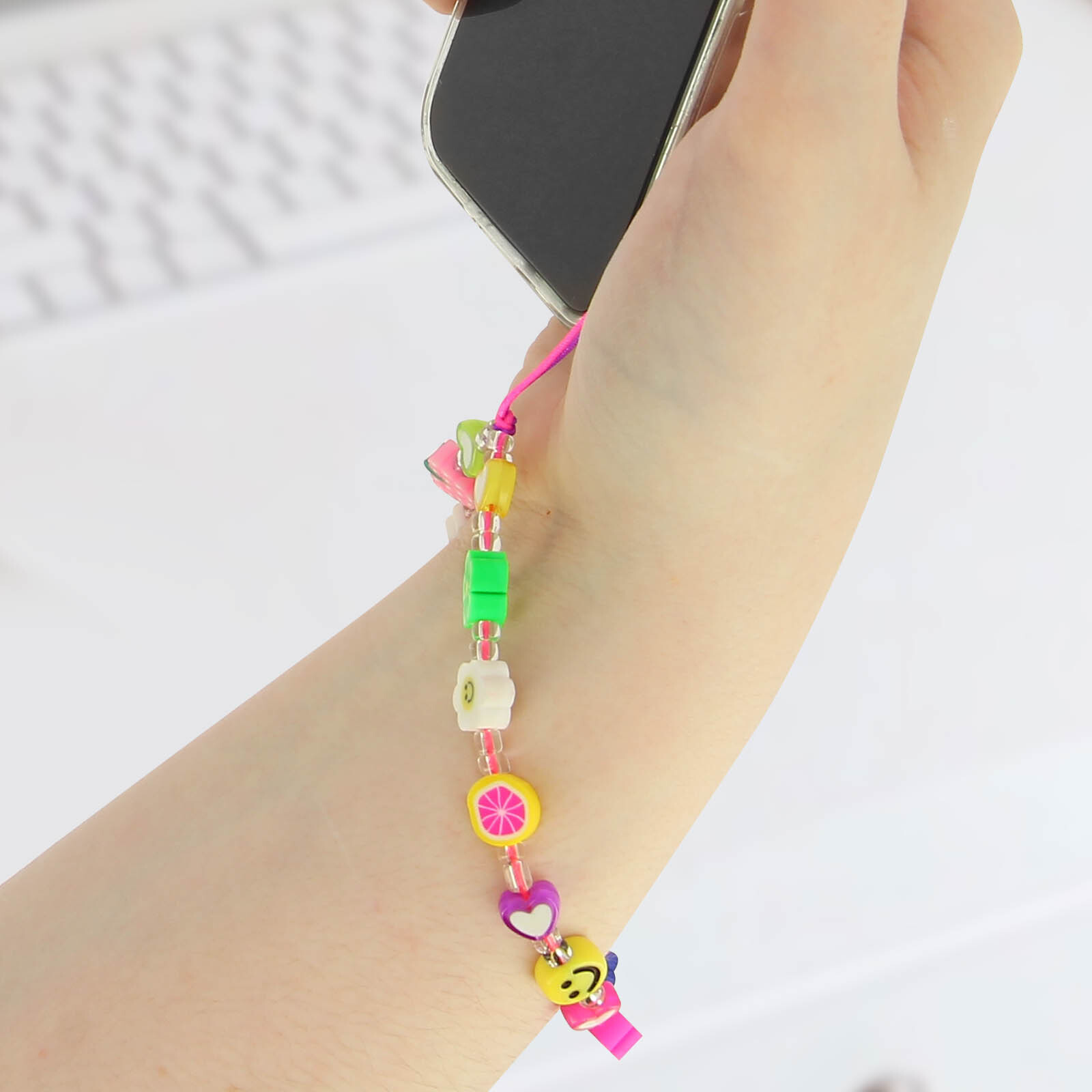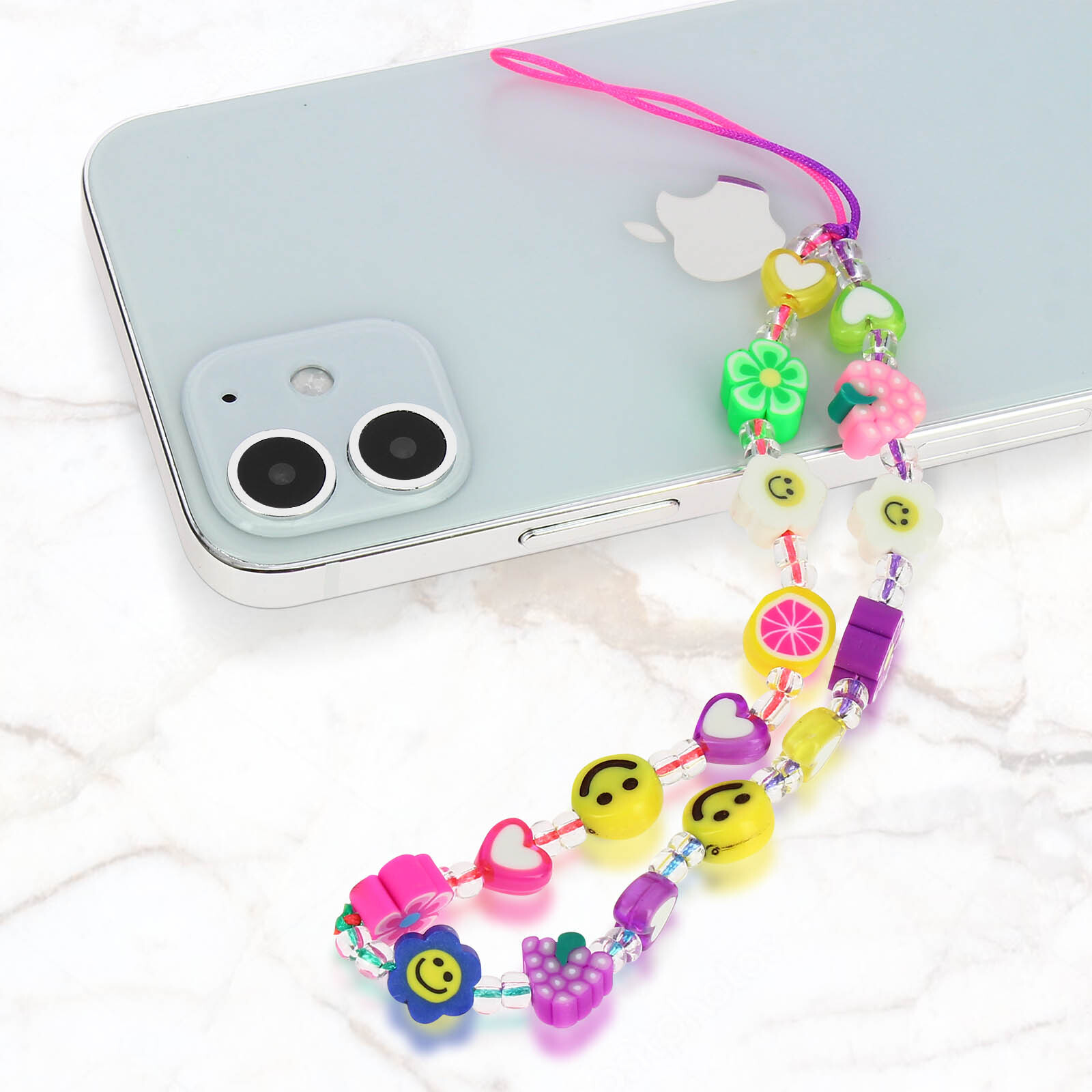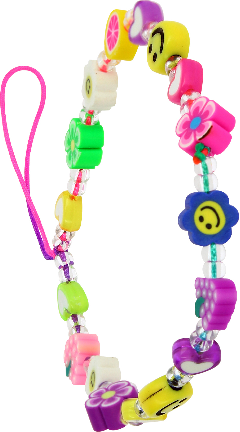 Joya afrutada para teléfono de la colección Tutti Frutti. Compatible con todas las fundas y carcasas protectoras gracias a su lazo de sujeción. Longitud 25 cm. Realizado con cuentas decorativas multicolores. Diseño variado y divertido. • Características y Puntos fuertes: Pulsera de teléfono afrutada, estilo Homemade original,de la colección Tutti Frutti. Composé de plusieurs elementos decorativos multicolores : frutas, corazón, smiley, flores, …. Pulsera chula y colorida para llevar el móvil en la muñeca. Compatible con todas las carcasas y fundas protectoras