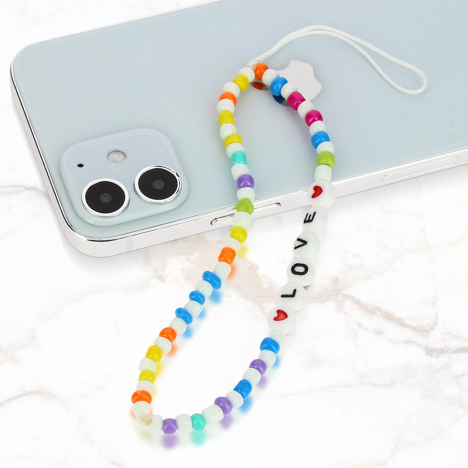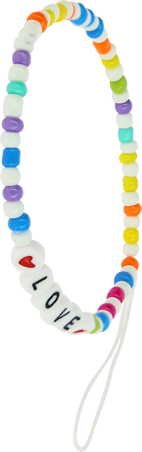 Joya multicolor para teléfono móvil de la colección Lovely. Compatible con fundas y carcasas gracias a su lazo de sujeción. Circunferencia 25 cm. Caprichosa joya casera que combina perlas multicolores y la letra LOVE. • Características y Puntos fuertes: Pulsera de teléfono con texto ""LOVE"", de la colección Lovely. Joyas artesanales que combinan perlas multicolores y la palabra LOVE. Pulsera chula y colorida para llevar el móvil en la muñeca. Compatible con todas las carcasas y fundas protectoras