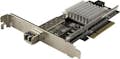 Esta tarjeta de red por fibra óptica ofrece conectividad en red fiable y de alto rendimiento, una manera sencilla y que resulta económica de actualizar su servidor o estación de trabajo a la conectividad con redes de 10 Gigabits a través de fibra óptica multimodo. La tarjeta de red 10G incluye un transceptor SFP+ multimodo instalado, con rango de hasta 330 metros, para poder empezar a funcionar rápidamente.\n\nAproveche las ventajas que ofrecen las velocidades de red más rápidas\nEl aumento del número de usuarios de las redes y de aplicaciones que requieren un uso intensivo de datos, como la transmisión de contenidos multimedia y las transferencias de ficheros de gran volumen, han contribuido a que sea necesario aumentar la capacidad del ancho de banda de su infraestructura de red. Esta tarjeta de red NIC para fibra óptica le ofrece las ventajas de una red de 10 Gigabits, mayor velocidad y estabilidad, con transferencias de datos de hasta 10Gbps y hasta 20Gbps (dúplex completo) de ancho de banda.\n\nIncluye un transceptor SFP+, diseñado para un rendimiento fiable\nPara más funcionalidad, la tarjeta de red 10G con un solo puerto incluye un transceptor SFP+ multimodo instalado. Diseñado para un rendimiento fiable, este transceptor SFP+ de 10GbE ha sido fabricado por StarTech.com para cumplir o sobrepasar las especificaciones de los fabricantes de equipos originales (OEM) y las normas industriales MSA (""Multi-Source Agreement"", acuerdo multifuente). El módulo SFP+ 10GBase-SR ofrece conectividad de 10 Gigabits a través de cable de fibra óptica multimodo, en un rango de hasta 330m. \n\nMejore la capacidad y fiabilidad de su red\nLa tarjeta de red de 10 Gigabits incluye el chipset Intel® 82599, con alimentación, rendimiento y capacidades mejoradas que son necesarias para conexiones en red fiables con su servidor u ordenador. Este chip Intel ofrece muchas funciones y características avanzadas, como la tecnología Intel® Virtualization Technology para conectividad, compatibilidad con arranque de red PXE, así como con tramas Jumbo 15K.\n\nLa tarjeta de red NIC de 10G se conecta fácilmente a través de una ranura de expansión disponible PCI Express y es compatible con la norma PCIe Rev. 2 x8 (o superior). La tarjeta de red incluye un perfil estándar y además un soporte de perfil bajo, para más versatilidad de instalación.\n\nEl modelo PEX10000SRI está avalado por la garantía de 2 años de StarTech.com y con soporte técnico gratuito de por vida.