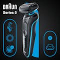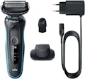 Braun Series 5 51-M1200s. Sistema de afeitado: Máquina de afeitar de láminas, Tecnologías de sistema de afeitado: AutoSense, Tipo de control: Botones. Color del producto: Negro, Azul. Fuente de energía: Batería, Tecnología de batería: Ión de litio, Tipo de batería: Batería integrada. Tipo de embalaje: Caja. Característica(s) de mango: Ergonómico, Agarre suave, País de origen: Alemania