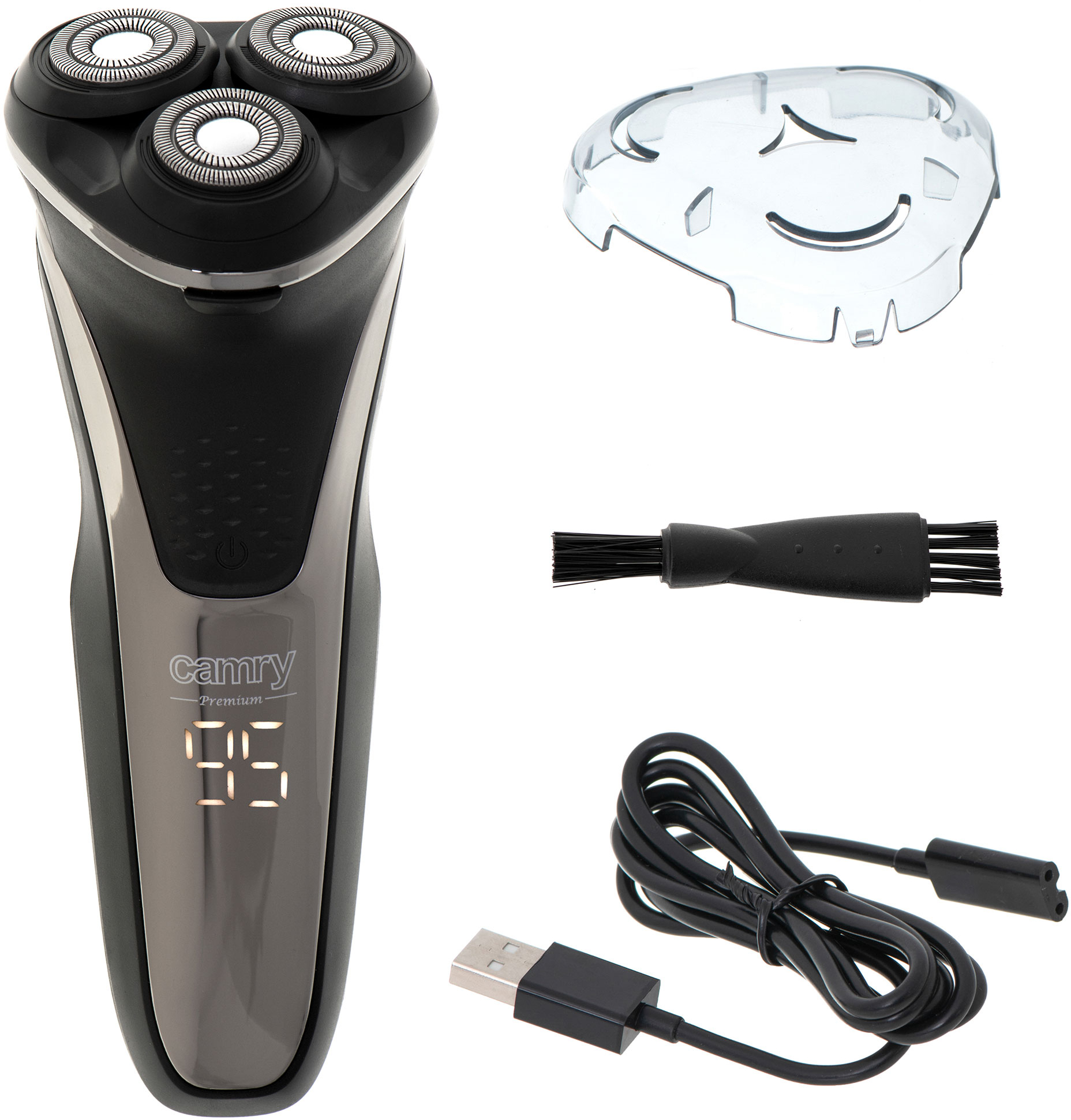 La afeitadora CR2927 de Camry es un producto que satisfará a todos los hombres que se preocupan por una apariencia elegante y aprecian la precisión del afeitado.CARACTERÍSTICAS:Triple cabezal: Las cuchillas de los 3 cabezales rotativos capturan los pelos más o menos largos y de diferente grosor proporcionando el afeitado perfecto. El dispositivo se puede lavar bajo un chorro de agua.Inalámbrica: Lista para usar en cualquier momento, funciona con batería recargable. El tiempo máximo de carga es de 1 hora y proporciona hasta 90 minutos de autonomía. Está equipada con pantalla LCD indicadora de carga.Afeitado apurado: La lámina exterior ultrafina y con microsurcos garantiza un afeitado apurado y respetuoso con la piel evitando irritaciones.Comodidad de uso: La forma ergonómica del aparato se adapta perfectamente a tu mano y garantiza comodidad de uso. La afeitadora cuenta con botón de bloqueo que evitará el encendido incontrolado del dispositivo también incluye una funda para el cabezal.Recortador de patillas: El aparato está equipado con un recortador de patillas integrado en la carcasa que sale al accionar un botón. Incluye bolsa de transporte, tapa protectora, cepillo de limpieza y cable cargador.ESPECIFICACIONES:3 Cabezales flotantesDiseño innovador del cabezalPantalla LCDBloqueo viajes/ niñosAfeitado apuradoRecortadora emergenteRecargableIndicador de cargaTiempo de trabajo hasta 90 minutosCarga rápida alrededor de 1 horaLa cabeza se puede limpiar con aguaCarga USB