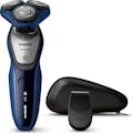 Philips Afeitadora eléctrica en seco y húmedo S5600/12, AquaTouch. Sistema de afeitado: Máquina de afeitar de rotación, Sustitución de la cabeza de afeitar (s) período: 2 año(s). Color del producto: Negro, Azul, Gris, Tipo de visualizador: LED. Fuente de energía: Batería, Tecnología de batería: Ión de litio, Tiempo de carga: 1 h. Característica(s) de mango: Ergonómico