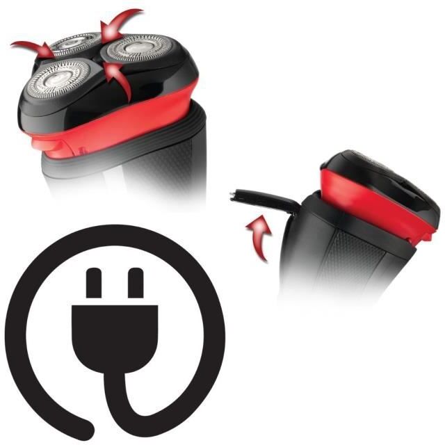 Cabezales de afeitado multidireccionales - Cuchillas flexibles - Cabezal pivotante: maximiza el contacto y la comodidad del afeitado - Contorno del cabezal antimicrobiano - Tecnología ComfortPivot de 360° - Doble vía - ComfortTrim: recortador retráctil - Guía del recortador de barba de 3 días - Enchufe de red - Voltaje universal