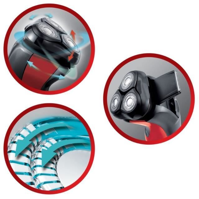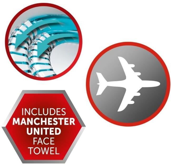 Producto oficial del Manchester United - Tecnología 360° ComfortPivot - Cuchillas de acero de precisión - 100% resistente al agua - Uso inalámbrico - Batería de litio - Indicador LED - Voltaje universal - Toalla del Manchester United