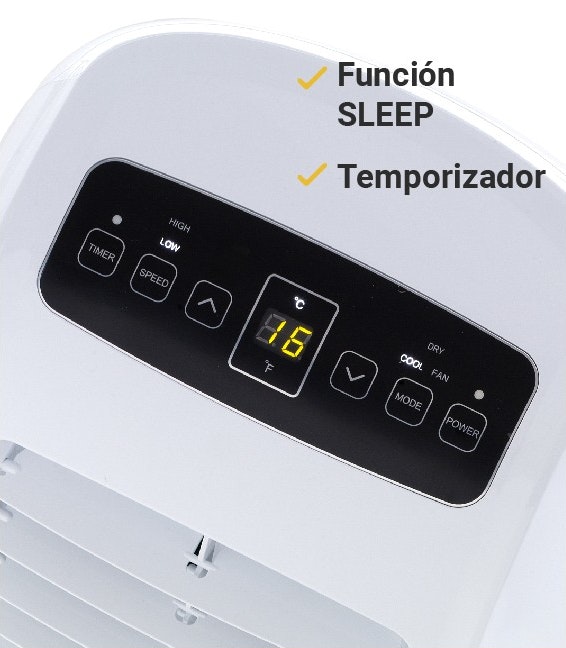 Para que el calor no te estropee el verano consigue uno de nuestros aires acondicionados portátiles. Desde Universal Blue te ofrecemos un aparato de aire acondicionado sin instalación, porque si vives en una casa de alquiler esta es tu mejor opción. El aire acondicionado portátil 1750 con pantalla LED y mando a distancia, lo podrás temporizar, seleccionar la temperatura que desees y además elegir entre las tres funciones, incluida la función SLEEP, que es el modo más silencioso. 1750 frigorías solo para ti. El kit de acople para la salida del aire va incluido. Y para los que están pensando en la huella ecológica, te informamos que su clasificación energética es A…¡Disfruta de aire fresco!