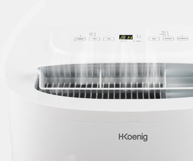 ¿Estas buscando un climatizador para refrescar tu interior?\nEl acondicionador de aire móvil reversible KOL7812 de H.Koenig combina todas las funciones que necesita en un solo dispositivo.\n\nEsta unidad es, al mismo tiempo, un aire acondicionado, un ventilador, un calentador y un deshumidificador. Te asegura un confort permanente en el hogar.\n\nNo dude en colocarlo junto a la almohada con su función de ""sueño especial"" que no le impedirá dormir.\n\nPor el contrario, con su capacidad de enfriamiento de 3500 W, garantiza una temperatura ideal para dormir mejor por la noche, independientemente de las condiciones climáticas.\n\nAnticipe sus necesidades, puede programarlo hasta 24 horas en su pantalla LCD para llegar a un entorno ideal de camino a casa.
