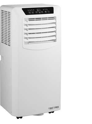 - Mando a distancia\n- Sistema Cooldown\n- Función de deshumidificación\n- Temporizador\n\nCaracterísticas\n- Controles Electrónicos: La unidad está equipada con controles electrónicos.\n- Mando a distancia: Esta unidad puede ser manejada con un mando a distancia de fácil uso.\n- Ajustes de temperatura: Cuando se enciende la pantalla LED, mostrará la temperatura ambiente. La temperatura deseada se puede ajustar entre 16 y 31 ° C. Nota: El resultado dependerá de las condiciones específicas de la habitación.\n- Ajustes de la velocidad del ventilador: Seleccione la velocidad del ventilador: baja o alta. El interfaz del usuario retroalimentará la velocidad e.leaida. Temporizador (Timer): Ajusta el tiempo de funcionamiento hasta 24 horas. La unidad se apaga o enciende automáticamente cuando el tiempo ajustado se ha agotado.\n- Aire acondicionado: La unidad produce, con una alta eficiencia energética (Categoría A), una alta capacidad de flujo de aire fresco agradable y refrescante. Las partículas insalubres son capturadas por el filtro de aire. El rendimiento es óptimo cuando se impide la entrada de aire exterior caliente.\n- Filtro de aire: El aire acondicionado está equipado con un filtro de Nylon que captura las partículas de polvo.\n- Sistema Cooldown: La unidad elimina la humedad por condensación. El agua de condensación enfría el condensador y es eliminada por la descarga del aire caliente. El llamado ""efecto enfriamiento"" aumentará la eficiencia energética y prolongará la duración del compresor.\n- Deshumidificación: Esta unidad puede utilizarse como deshumidificador independiente. En este caso, la manguera de evacuación no estará conectada y el aire cálido retornará a la habitación.\n- Drenaje continuo: Este aire acondicionado puede ser usado como un deshumidificador. En tal caso, es necesario conectar (no incluido) un tubo de drenaje continuo a la unidad.\n- Tubo de evacuación: El aire caliente y la humedad se extraen de la habitación a través de un tubo de evacuación fácil de instalar.\n- Diseño: Moderno, elegante y exclusivo diseño Tectro incluyendo LED-display y mando a distancia.\n- Caja de cartón marrón: La unidad se entrega completa con piezas auxiliares en una caja marrón que muestra las aplicaciones e información de manejo en 14 idiomas.