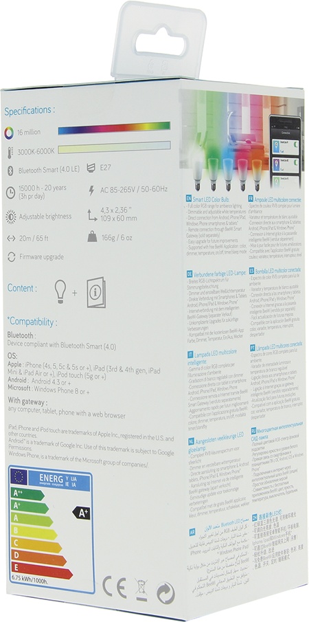 Bombilla inteligente bluetooth con LED de colores, dispone de ajuste de la intensidad de la luz y posibilidad de cambios en los colores.