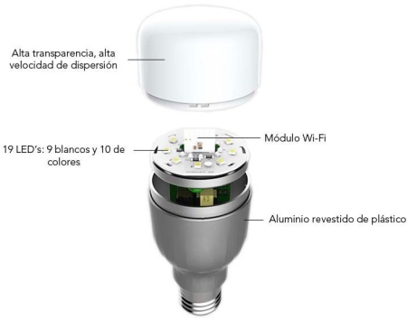 La bombilla de luz LED de Yeelight cuenta con una estructura óptica profesional combinada con LED de alta calidad (diodos emisores de luz), que