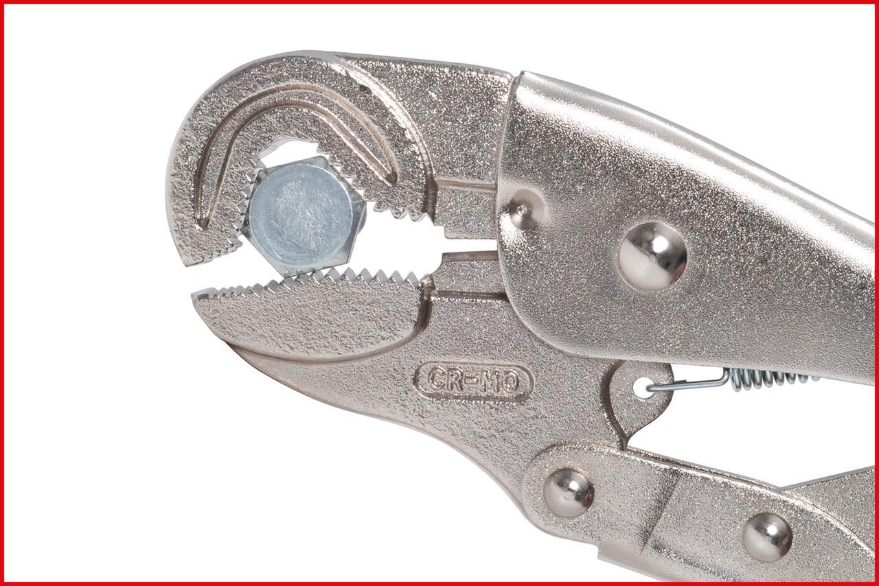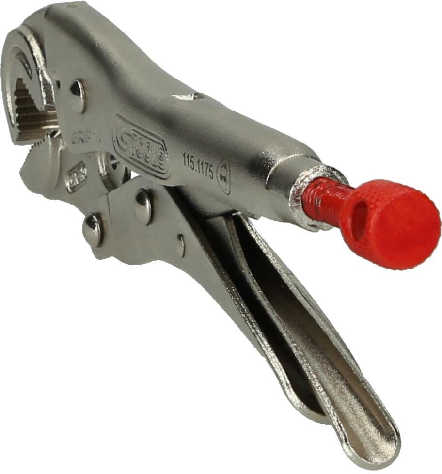 Para sujetar tuercas y cabezas de tornillo con seguridad Su agarre de 3 puntos impide el deslizamiento y la deformación de los cantos Con palanca de liberación Con seguro de fijación Ajuste de medida mediante rueda de ajuste Buena adaptación a las superficies de apoyo disponibles Con función cortaalambres Sin ensanchamiento ni siquiera con la máxima carga Palanca de liberación con presión constante por resorte Cromado Cromo-molibdeno