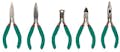 Incluye 5 alicates de precisión: alicates de corte en diagonal, cutter, alicates de punta 1/2 caña corta acodada, alicates de punta plana, alicates de punta plana larga.