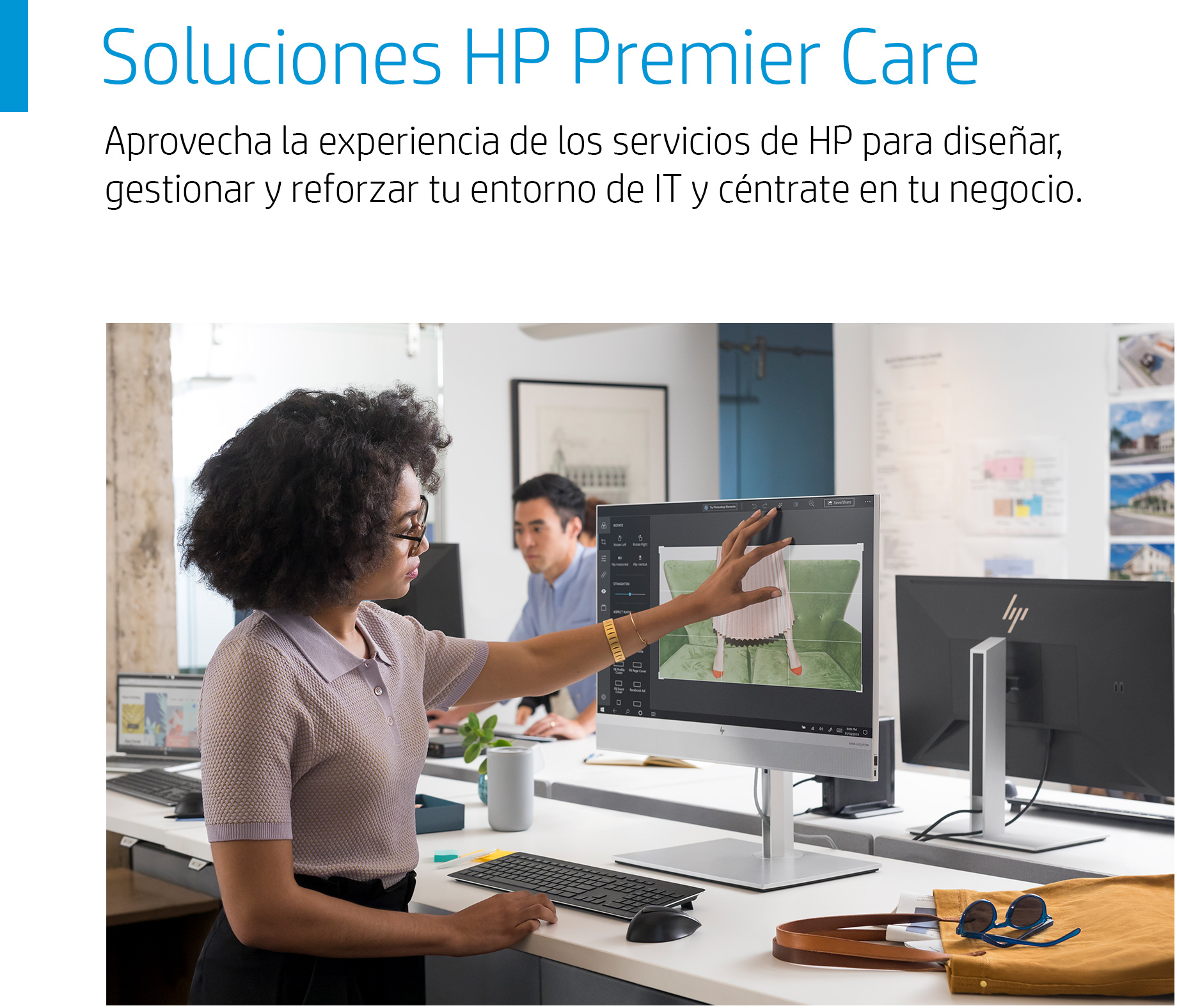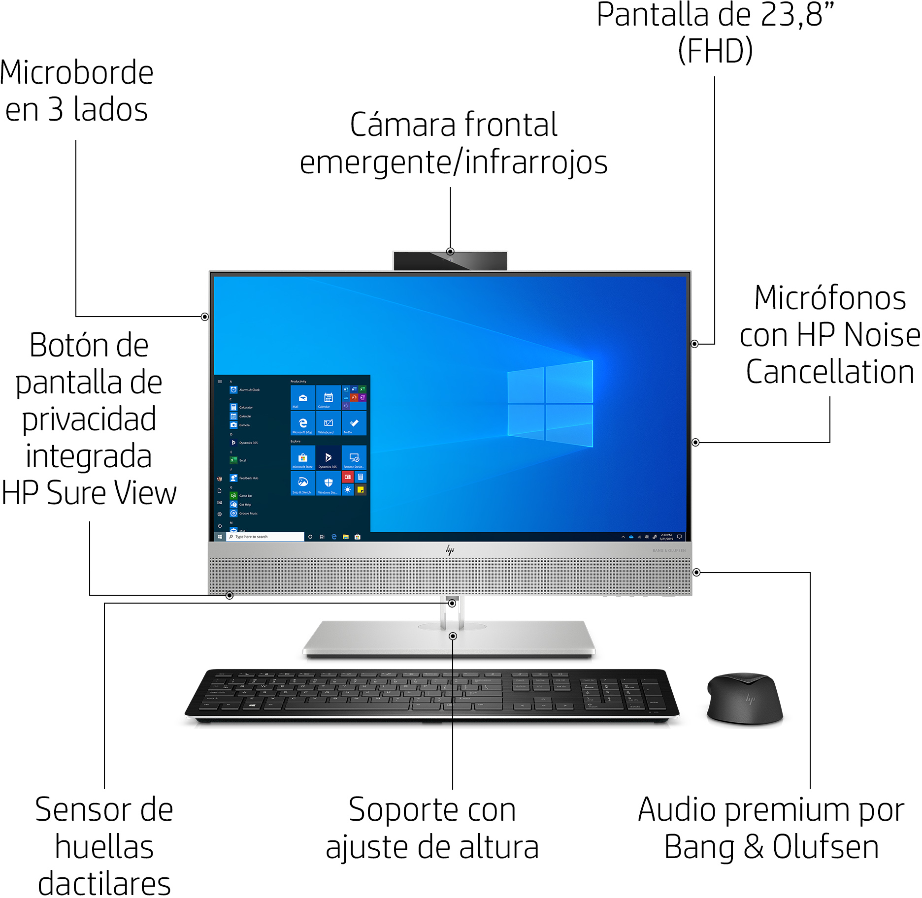 Elegancia y potencia combinadas en un All-in-One\nCon su finísima pantalla de 23,8 pulgadas, el All-in-One HP EliteOne 800 llamará tu atención por su espectacular diseño. Desafía tus expectativas sobre las capacidades de un All-in-One con esta solución potente, segura y sólida diseñada para aquellos que son referentes en su sector.