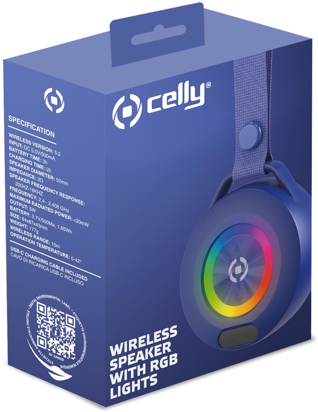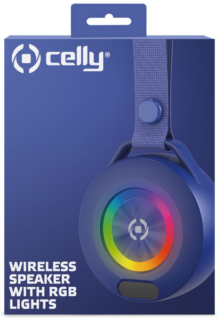 Celly LIGHTBEATBL. Potencia estimada RMS: 5 W, Obstrucción: 3 O. Tecnología de conectividad: Inalámbrico, alcance Bluetooth: 10 m. Tipo de producto: Altavoz portátil estéreo, Color del producto: Azul. Uso recomendado: Teléfono móvil/Smartphone. Tipo de batería: Batería integrada, Autonomía: 5 h