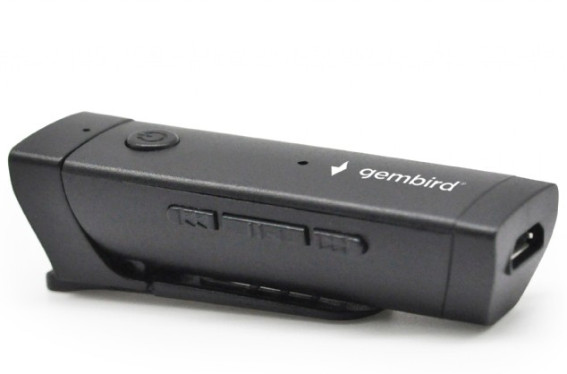 Gembird BTR-05. Interfaz de host: 3,5 mm, Distancia de transmisión: 10 m, Alcance de frecuencia: 2,4 - 2,4835 GHz. Fuente de energía: Batería. Tecnología de batería: Polímero de litio, Capacidad de batería: 50 mAh, Tiempo de carga: 1,5 h. Cables incluidos: USB
