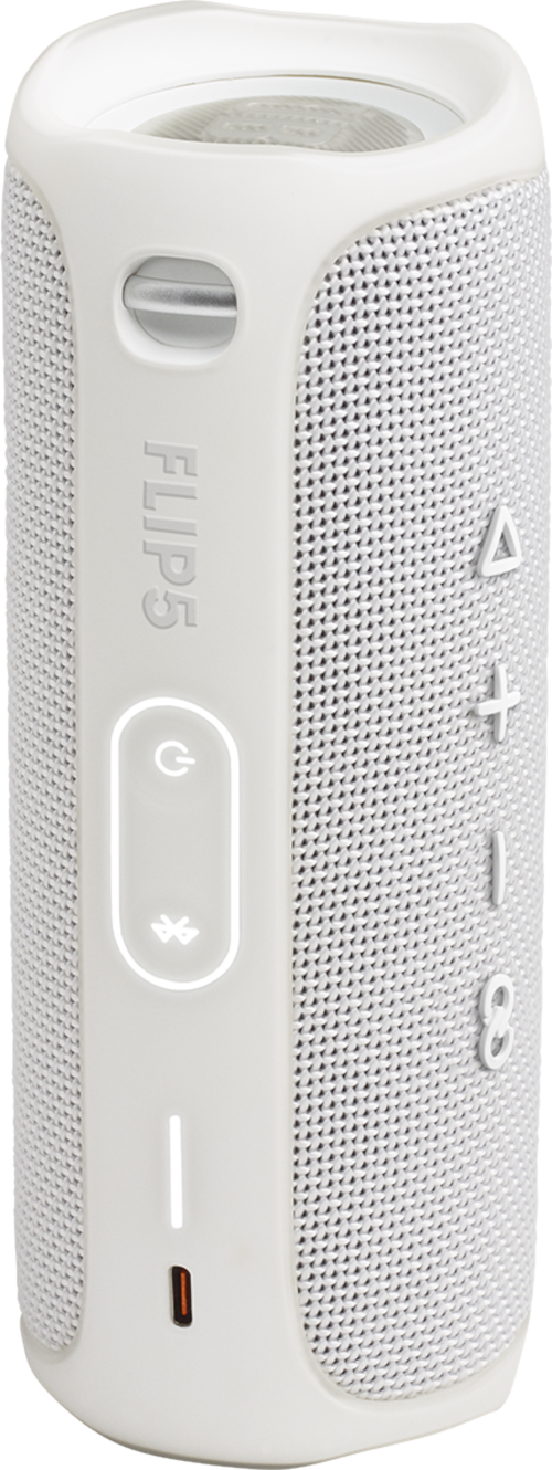 JBL FLIP 5. Canales de salida de audio: 2.0 canales, Dimensiones del conductor (ancho x alto): 44 x 80 mm. Potencia estimada RMS: 20 W, Relación señal/ruido (SNR): 80 dB. Tecnología de conectividad: Inalámbrico y alámbrico, Perfiles de Bluetooth: A2DP,AVRCP, Conector USB: USB Tipo C. Tipo de producto: Altavoz portátil estéreo, Color del producto: Blanco, Control de volumen: Digital. Uso recomendado: Teléfono móvil/Smartphone