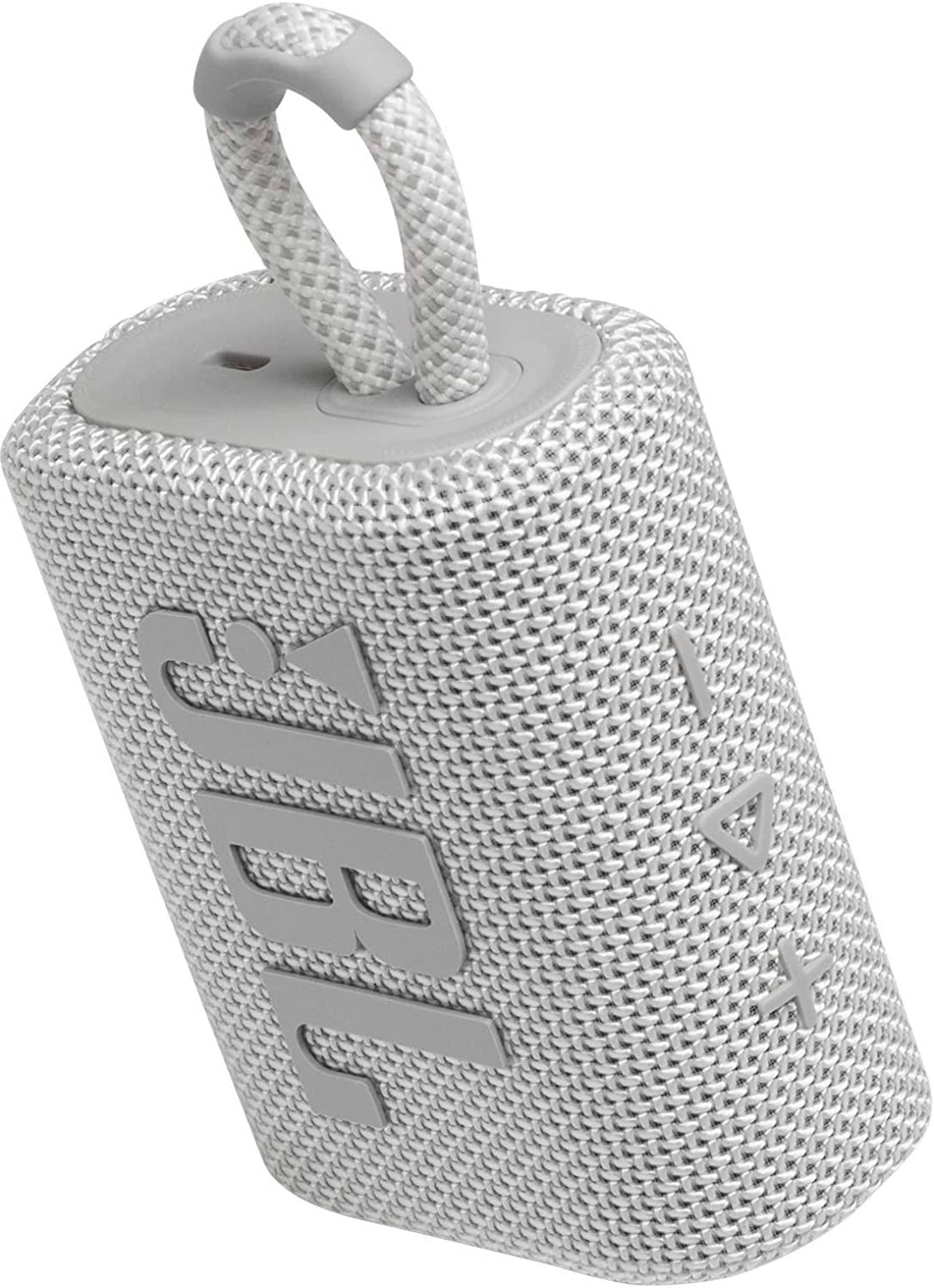 Altavoz inalámbrico portátil JBL GO3 con acabado en color blanco, 4.2W RMS de potencia de salida, conectividad inalámbrica Bluetooth 5.1, hasta 5 horas de reproducción, resistente al polvo y al agua IP67.