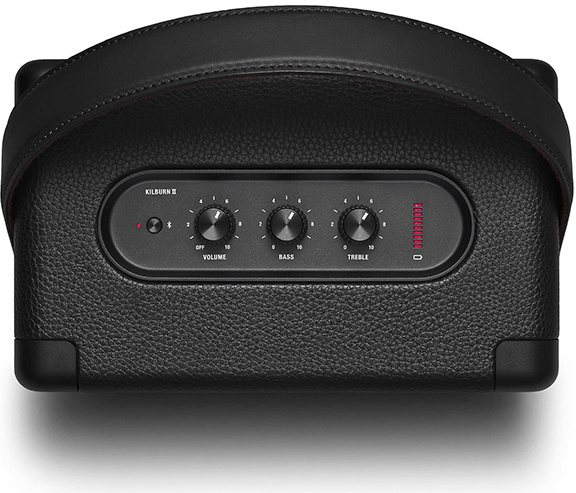 El panel superior de Kilburn II lleva mandos de control analógicos para ajustar los bajos, los agudos y el volumen, lo que te permite disfrutar del sonido exactamente como te gusta.
