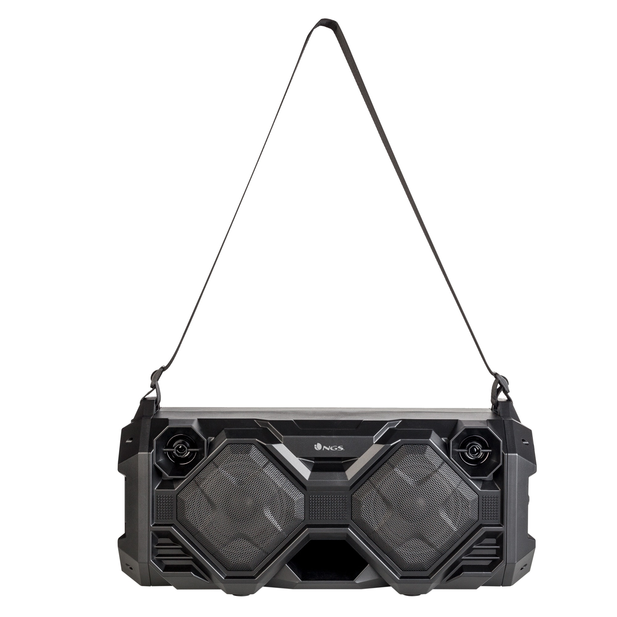 NGS Street Fusion es un altavoz inalámbrico de 100W que destaca por su diseño compacto y urbano con el que podrás disfrutar de tus fiestas en cualquier parte, gracias a su batería recargable integrada de 2000mAh que le permite reproducir música durante más de 4 horas y a su correa extraíble para transportar fácilmente al hombro.\n\nDispone de una entrada de micrófono para tus sesiones de karaoke, además está equipado con controles de volumen y Echo para el mismo.\n\nEste altavoz compatible con la tecnología Bluetooth cuenta con puerto USB de reproducción, ranura para tarjeta microSD, Radio FM y entrada de audio estéreo para conectar dispositivos externos y disfrutar de tu música favorita.\n\nEstá equipado con pantalla LED y sencillos controles en la parte lateral de fácil acceso: Play/Pause, FWD y REW, 4 modos de ecualización: Jazz, Pop, Clásico y normal.\n\nAdemás, gracias a su función REC podrás realizar grabaciones de voz en una memoria USB o una memoria Flash.\n\nPor último, el tiempo de carga de NGS Street Fusion es aproximadamente de 3 horas.