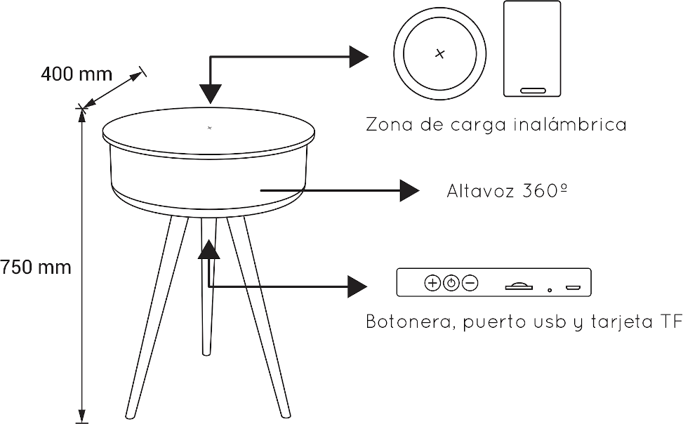 ME! Mesa Altavoz con Carga Inalámbrica