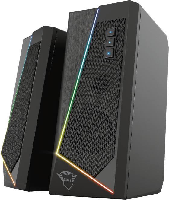 Un complemento elegante\n\nGracias a su diseño estilizado y a la sutil iluminación RGB, el juego de auriculares GXT 609 Zoxa de Trust es un complemento elegante para cualquier escritorio. Además, este juego de altavoces estéreo es fácil de usar y ni siquiera requiere un enchufe de pared. Se enciende automáticamente al encender el PC.\n\nFácil de disfrutar\n\nEl juego de auriculares Zoxa de Trust está diseñado para que sea fácil de usar. Simplemente se conecta el cable de audio y todo está listo para disfrutar de los 12 W de potencia máxima (6 W RMS) en cuestión de segundos. Al conectar el cable USB, los altavoces se encienden sin necesidad de un enchufe de pared y, gracias a los controles de fácil acceso, se puede ajustar el volumen sobre la marcha.\n\nLa estética gamer que quieres\n\nPor su diseño moderno y elegante, el juego de auriculares Zoxa de Trust encaja igual de bien tanto en el despacho de casa como en una sala de gaming. Pero como buen gamer que eres, tu deber es presumir de él. El juego de auriculares Zoxa incluye una sutil iluminación RGB con 6 modos diferentes. Sí, tiene un diseño minimalista; es como un lobo con piel de cordero.