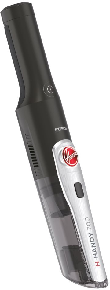 Hoover H-HANDY 700 Express . Tipo de limpiador: Secar, Filtración de aire en aspiradora: EPA, Método de separación de la suciedad: Filtrado. Tipo de depósito: Sin bolsa, Color del producto: Titanio, Capacidad del depósito del polvo en seco: 0,15 L. Fuente de energía: Batería, Tiempo de funcionamiento: 12 min, Tiempo de carga: 3 h. Peso: 660 g, Ancho: 418 mm, Profundidad: 66 mm