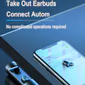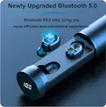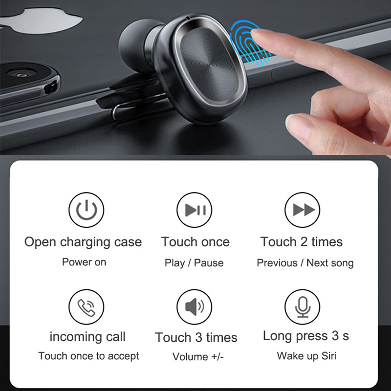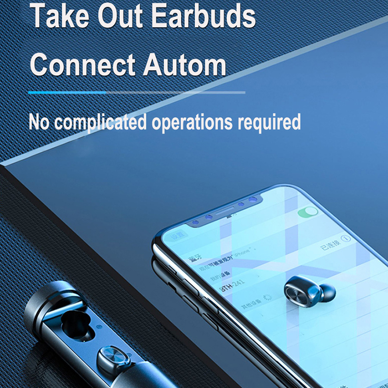 Product name: true wireless bluetooth headset.Bluetooth version: V5.1.Charging bay capacity: 300mAh.Bluetooth transmission distance: 10 meters.Listening time: 4-5 hours.Talk time: 4-5 hours.Product details:.This Bluetooth headset, LED display, binaural call, smart touch buttons, can charge mobile phones, true wireless Bluetooth headset..8D SURROUND SOUND:The newly upgraded Bluetooth 5.0 and Bluetooth V5.0 chips of the headset 8D surround sound metal matte, bring you a more efficient and convenient experience, handle one-button control, pure sound, and enjoy amazing stereo..SMART TOUCH:One-button smart touch Wake Siri, volume control, music switching, easy to touch, comfortable to wear, and stress-free. Whether it is sweating in the gym or outdoor sports in the rain, it will not damage the headset..CONNECT AUTOMATICALLY:Take out the earplugs and connect automatically without complicated operations. The ergonomically designed headphone head with soft natural silicone earmuffs will not cause earaches and other undesirable conditions even if the headphones are worn for a long time..PRODUCT SIZE:LED smart button light, ergonomic design; it will not fall off when worn on the ear,Bluetooth V5.0 chip, bring you more efficient and convenient experience.