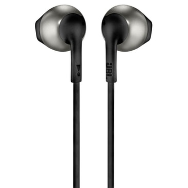 Auriculares JBL T205 con micro y botones. Bajos profundos gracias al Pure Bass. Control rápido de música y llamadas. Diseño premium con acabado metalizado. Cable antinudos, jack 3,5mm. Estuche incluido