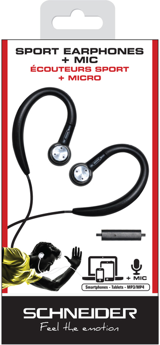 Schneider Auriculares deportivos estéreo con micrófono y diadema Negro / Plateado