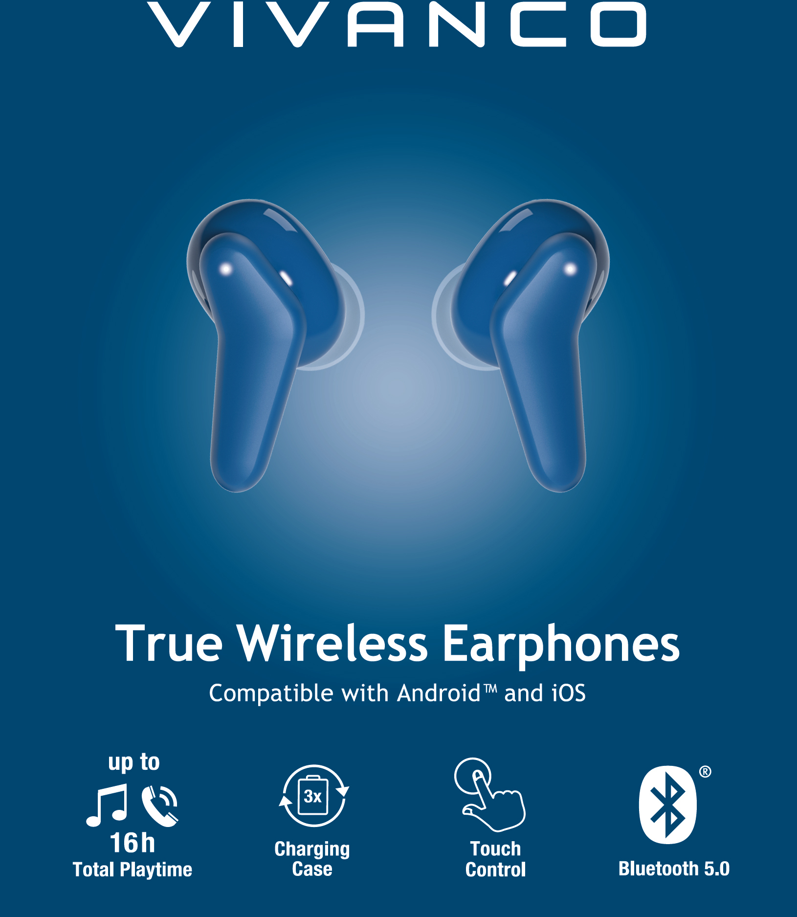 Vivanco Fresh Pair. Tipo de producto: Auriculares. Tecnología de conectividad: Inalámbrico, Bluetooth. Uso recomendado: Llamadas/Música. Alcance inalámbrico: 10 m. Color del producto: Azul