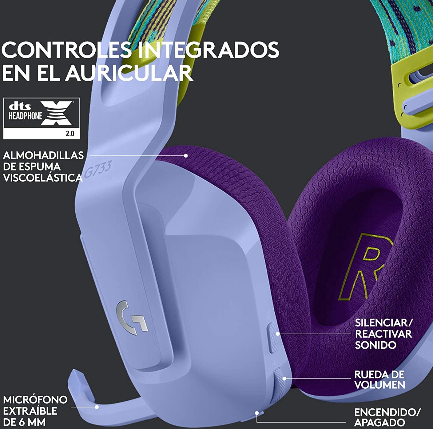 Logitech G733 LIGHTSPEED Auriculares 29h de Batería Lila