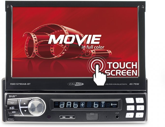 Caliber RMD579DAB-BT. Color del producto: Negro, Tamaño DIN: 1 DIN, Potencia máxima por canal: 75 W. Formatos de audio soportados: MP3,WMA, Formatos de imagen soportados: JPEG, Formatos de vídeo compatibles: DIVX,MPEG4. Tipo de visualizador: LCD, Diagonal de la pantalla: 17,8 cm (7""). Perfiles de Bluetooth: A2DP,AVRCP. Bandas de radio soportadas: AM,DAB+,FM