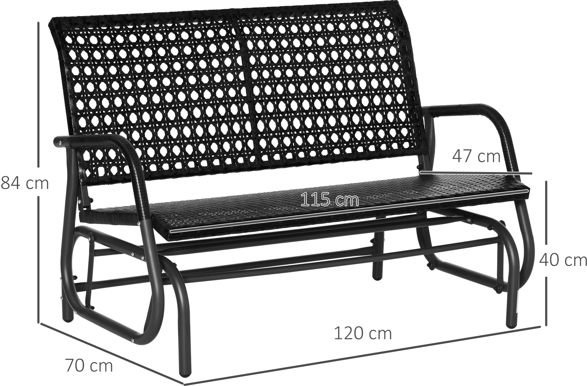 Este balancín compacto de Outsunny es lo que te hace falta para relajarte en el exterior de tu casa, sea un jardín, terraza, balcón, etc. Con capacidad para dos personas, soporta hasta 220 kg. Su mecanismo ofrece un deslizamiento suave para que te balancees de forma cómoda y natural. Con estructura de metal y ratán sintético, la silla mecedora de jardín ofrece una gran resistencia a la intemperie y a los rayos UV ¡Para que disfrutes del buen tiempo de la mejor manera! Características - Banco 2 en 1 con base basculante para usarlo también como balancín - Estructura de metal con gran capacidad de carga, soporta hasta 220 kg - Asiento y respaldo acabado en ratán sintético. El trenzado del material ofrece una gran transpirabilidad y en consecuencia un sentado cómodo - Asiento y respaldo anchos, suficiente para que se sienten cómodamente dos personas - Ideal para su uso exterior como jardines, patios, terrazas, o balcones - Se requiere montaje Especificaciones - Color: negro y gris - Material: acero y ratán PE - Medidas totales: 70x120x84 cm (LxANxAL) - Medidas del asiento: 115x47 cm (LxAN) - Medidas del respaldo: 114x50 cm (LxAL) - Altura del asiento: 40 cm - Altura y ancho del reposabrazos: 62 cm y 3 cm - Distancia de balanceo: 25 cm - Carga máxima: 220 kg - Capacidad: 2 personas - Certificaciones: EN581-1-2 - Referencia: 867-109BK