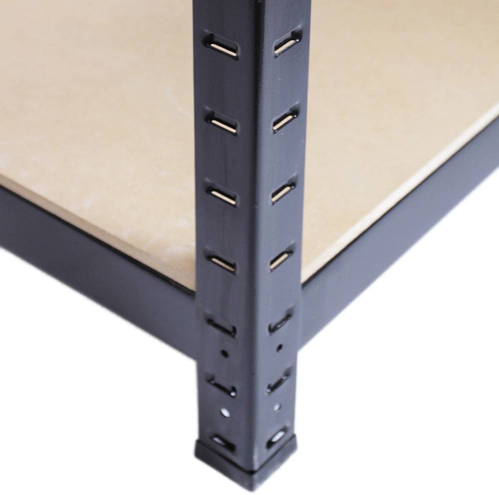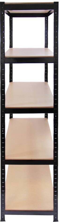 Organiza el espacio de tu garaje con las estanterías para garaje y almacén de nuestra gama T-Rax..100% sin tornillos, 280kg de capacitad y mide 90cm (anchura) x 45cm (profundidad) x 180cm (altura)..Características:.? 1 x estantería para almacén/garaje de nuestra gama Q-Rax con cinco estantes..? Puede ser separada para crear dos mesas de trabajo..? Sólidos tablones de MDF para todos los estantes..? Pies que garantizan estabilidad extra..? Tolerancia de peso de 280kg por estante si el peso es uniformemente distribuido..? Acero resistente (cada estantería pesa más de 35kg)..Para montar esta estantería todo lo que necesitas es, ¡una maza de goma!.Ojea nuestra tienda en eBay para ver otras estanterías para garaje / almacén / deposito..Artículos relacionados: 6x conectores para Estanterías.