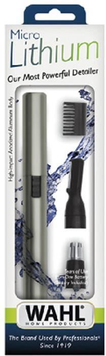Los puntos fuertes del cortapelos para hombre MICRO LITHIUM 5640-1016 de Wahl Cortapelos para nariz, orejas y cejas - Funciona con pilas Cuchillas de acero inoxidable lavables Sistema de corte giratorio Incluye: cabezal de corte de precisión, contrapeine para cejas