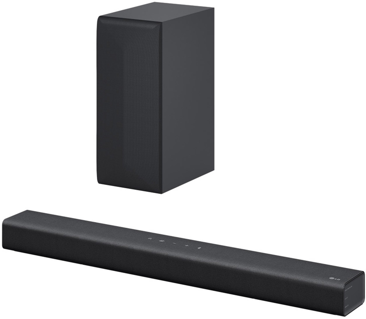 LG S60Q. Canales de salida de audio: 2.1 canales, Potencia estimada RMS: 300 W, Decodificadores incorporados: Dolby Digital Plus, Dolby Atmos, Dolby Digital, Dolby TrueHD. Potencia de la barra de sonido del altavoz RMS: 100 W, Obstrucción: 4 O. Tipo de subwoofer: Altavoz de subgraves (subwoofer) activo, Conectividad del altavoz de subgraves (subwoofer): Inalámbrico, Potencia RMS de subwoofer: 200 W. Color del producto: Negro, Tecnología HDR (High Dynamic Range, Alto rango dinámico): Dolby Vision, High Dynamic Range 10 (HDR10), Formatos de audio soportados: AAC, LPCM. Tecnología de conectividad: Inalámbrico y alámbrico, Códec de audio para Bluetooth: SBC / AAC