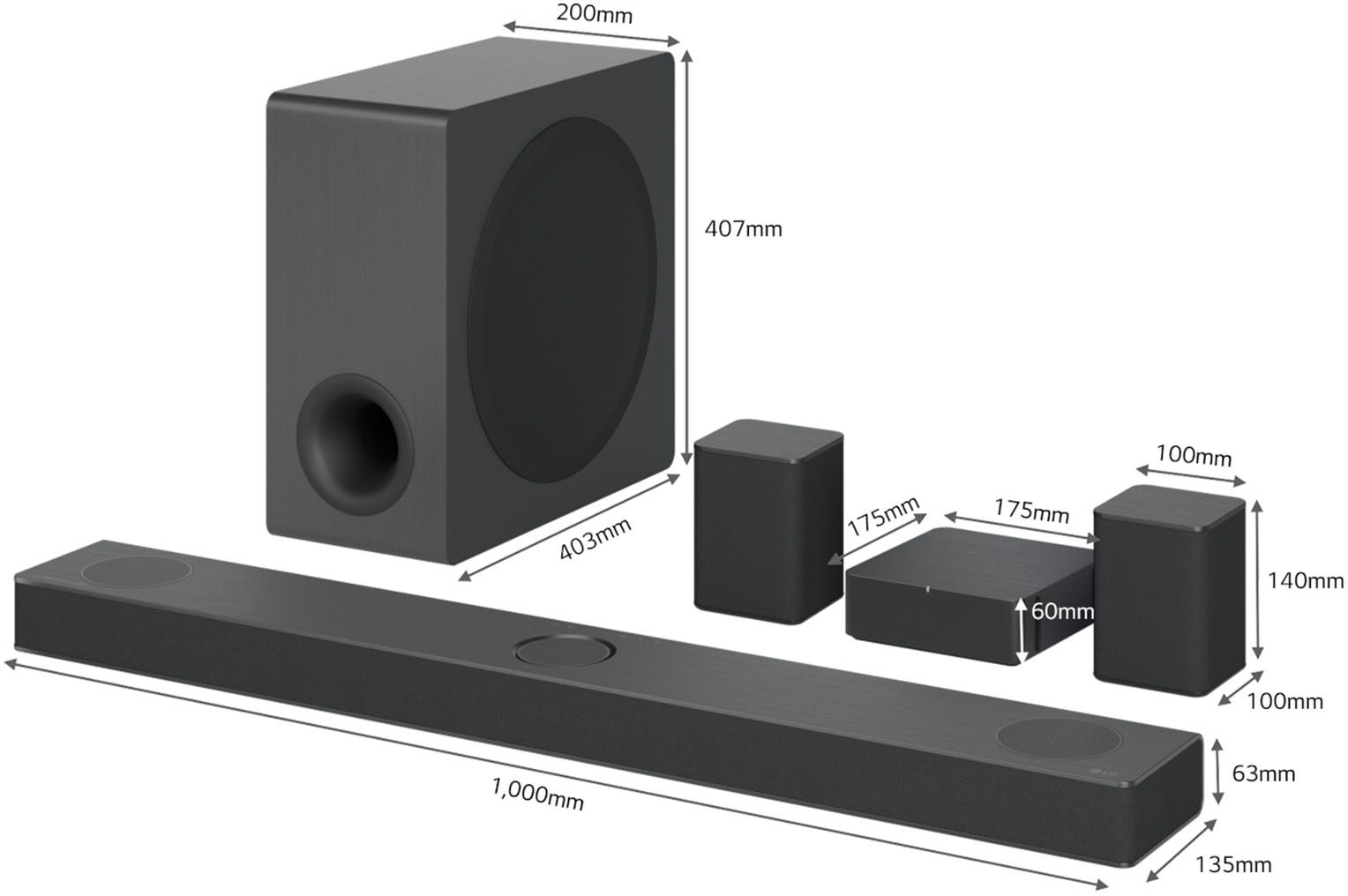 LG S80QR. Canales de salida de audio: 5.1.3 canales, Potencia estimada RMS: 620 W, Decodificadores incorporados: DTS-HD HR, DTS-HD Master Audio, Dolby Digital Plus, DTS:X, Dolby Atmos, Dolby Digital, DTS Digital.... Potencia de la barra de sonido del altavoz RMS: 260 W, Obstrucción: 4 O. Tipo de subwoofer: Altavoz de subgraves (subwoofer) activo, Conectividad del altavoz de subgraves (subwoofer): Inalámbrico, Potencia RMS de subwoofer: 220 W. Color del producto: Plata, Nombre del color: Dark Steel Silver, Tecnología HDR (High Dynamic Range, Alto rango dinámico): Dolby Vision, High Dynamic Range 10 (HDR10). Tecnología de conectividad: Inalámbrico y alámbrico, Códec de audio para Bluetooth: SBC / AAC