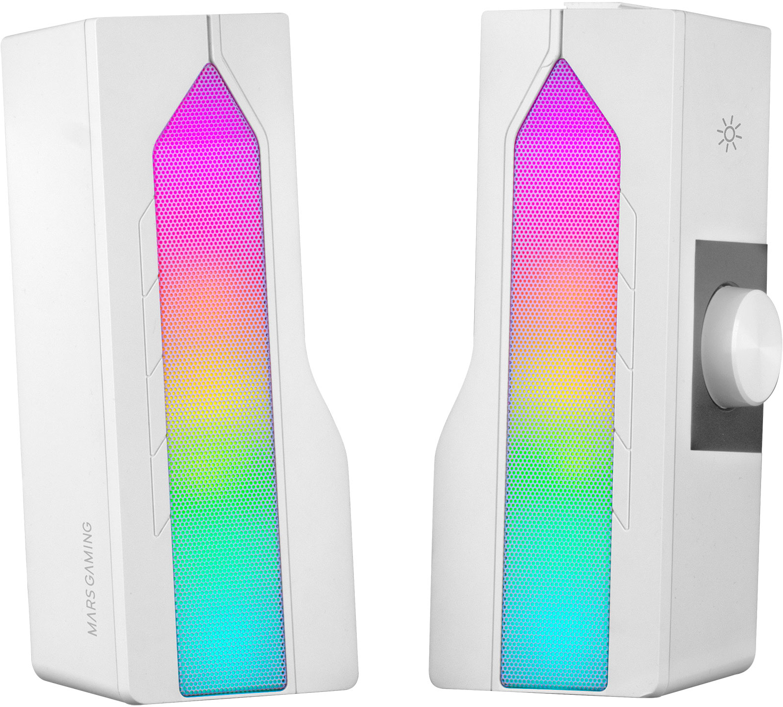 2 en 1: soundbar o altavoces 2.0. Tú eliges. Espectacularidad máxima con el sistema RGB MESH, avanzado procesador de sonido DSP con espacialidad multinivel y graves mejorados, conectividad total jack + Bluetooth 5.0 y un cómodo sistema de control.\n\n15W DE POTENCIA\nDisfruta sin limitaciones de volumen y una calidad de sonido excepcional durante tus partidas, viendo películas, series o escuchando música. Y todo ello con una cómoda alimentación a través de USB.\n\nELIGE TU COLOR: BLANCO O NEGRO\nDisponible en dos acabados, blanco y negro. ¡Escoge el que mejor se adapte a tu setup!\n\n2EN1: SOUNDBAR O ALTAVOCES\nGracias a su avanzada estructura, MSDUO puede ser una espectacular soundbar o puede separarse en dos y funcionar como un sistema de altavoces 2.0. Versatilidad máxima en cualquier situación.\n\nBLUETOOTH 5.0 + JACK\nVersatilidad total gracias a su conexión jack aux-in e inalámbrica de última generación Bluetooth 5.0. Utilízalo sin límites ni limitaciones, con tu PC, consola, televisor o smartphone.\n\nRGB MESH\nLlena de luz y color tu setup con un impresionante sistema de iluminación RGB MESH. Selecciona entre espectaculares modos de iluminación dinámica RGB gracias a su cómodo sistema de control.\n\nPROCESADOR DE SONIDO DSP + REFLEX\nGracias a su avanzado procesador de sonido DSP digital y al posicionamiento invertido de los drivers de sonido REFLEX, el MSDUO reproduce el sonido con una espacialidad multinivel y graves mejorados, metiéndote de lleno en el centro de acción y haciéndote disfrutar como nunca.
