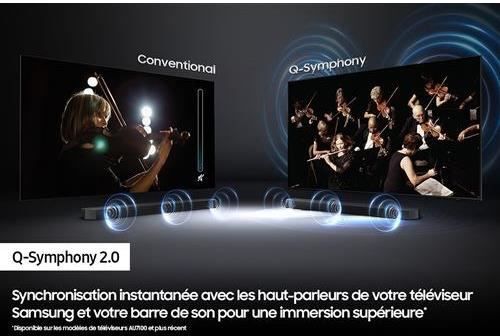 Barra de sonido con subwoofer inalámbrico 340 Watts RMS: ideal para una habitación de 40m2 y más Dolby Atmos, DTS, DTS X - HDMI CEC, HDMI Arc, entrada óptica El +: Q-symphony: sincroniza los altavoces del televisor con la barra de sonido para obtener un sonido impresionante