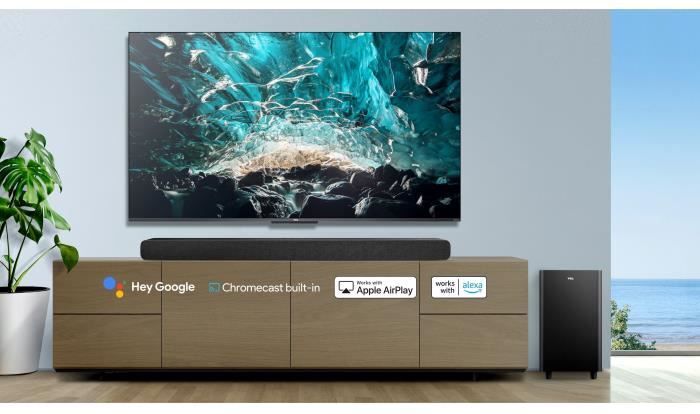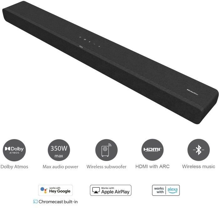 Barra de sonido TCL TS8132 con subwoofer inalámbrico - Dolby Atmos 3.1.2 - 350W - Chromecast integrado y compatible con Hey Google - Apple AirPlay, compatible con Alexa - HDMI ARC - 100dB - 8 bocinas - Experiencia de TV inmersiva