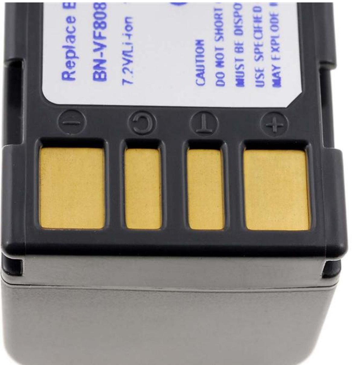 Batería para Videocámara JVC modelo/tef. BN-VF815, 7,2V, 1600mAh/11,5Wh, Li-Ion, recargable. DETALLES: Tensión: 7.2V. Capacidad en amperios hora: 1600mAh. Energía en vatios por hora: 11,5Wh. Peso aprox.: 90 g. Dimensiones: 51,6mm x 30,6mm x 32mm. Tecnología: Li-Ion. Color: Negro. 100% Compatible y de alta calidad. Nuevo. ///Cualquier empresa, nombre de marca y marca son propiedad de sus respectivos dueños y se utilizan solamente para la identificación inequívoca del artículo de recambio