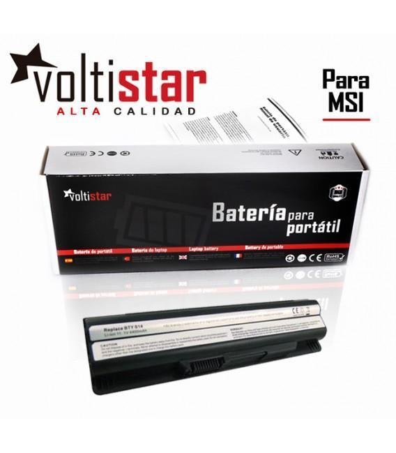 Batería para portátil MSIVoltios: 11.1VCapacidad: 4400 Mah MODELOS DE PORTÁTIL COMPATIBLES:MEDION Akoya Mini E1311MEDION Akoya Mini E1312MEDION Akoya Mini E1315MEDION MD97107MEDION MD97125MEDION MD97127MEDION MD97164MEDION MD97295MEDION MD97690MSI CR650MSI CX650MSI FR400MSI FR600MSI FR610MSI FR620MSI FR700MSI FX400MSI FX420MSI FX600MSI FX603MSI FX610MSI FX620MSI FX620DXMSI FX700MSI GE620MSI GE620DXMSI GP-70MSI GP-60 P/N DE BATERÍAS COMPATIBLES:MSI 40029150MSI 40029231MSI 40029683MSI BP-16G1-32/2200PMSI BTY-S14MSI BTY-S15MSI E2MS110K2002MSI E2MS110W2002MSI E2MS115K2002 Antes de comprar, por favor, asegúrese de que la batería que necesita es la misma que anunciamos. Para evitar errores y devoluciones, compare la batería de su portátil con la batería que mostramos en las fotografías.Esa batería para portátil MSI es compatible con los modelos indicados (y más). El modelo completo de su portátil lo puede ver situado debajo del mismo. Si no encuentra el modelo de su portátil o no sabe qué bisagras son compatibles con su portátil por favor pregunte y le informaremos con mucho gusto.