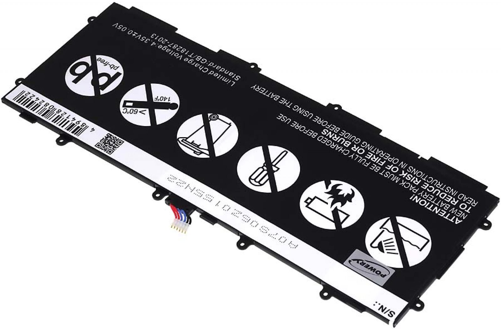 Batería para Tablet Samsung GT-P5210, 3,8V, 6800mAh/26Wh, Li-Polymer, recargable. DETALLES: Tensión: 3.8V. Capacidad en amperios hora: 6800mAh. Energía en vatios por hora: 26Wh. Peso aprox.: 200 g. Tecnología: Li-Polymer. Color: Negro. 100% Compatible y de alta calidad. Nuevo. ///Cualquier empresa, nombre de marca y marca son propiedad de sus respectivos dueños y se utilizan solamente para la identificación inequívoca del artículo de recambio