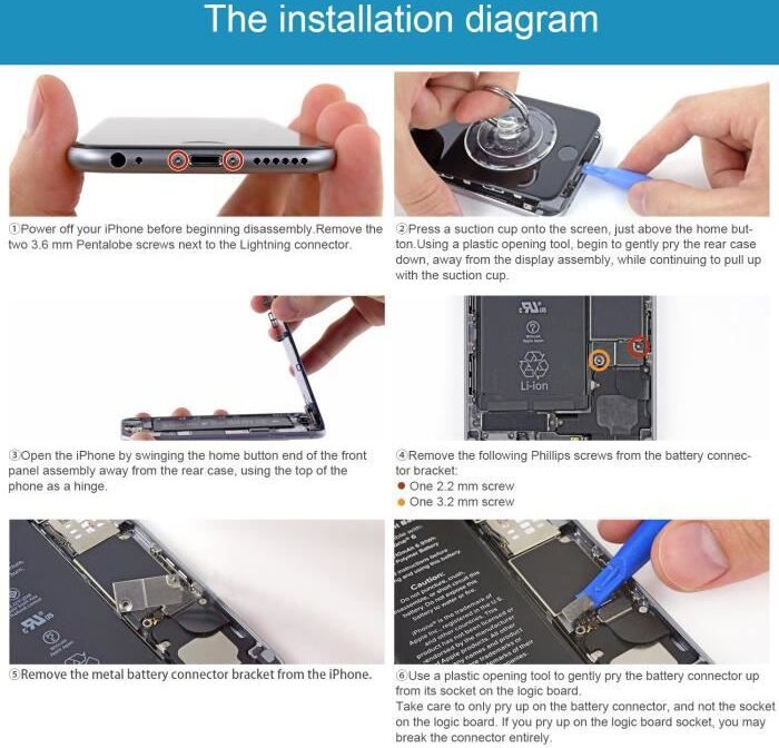 Descripción Acerca del producto 1. Batería de polímero de litio nueva y de alta calidad para iPhone 6 2. El mejor reemplazo para la batería original con un tiempo de espera y de conversación comparable 3. Utilice únicamente un cargador autorizado.