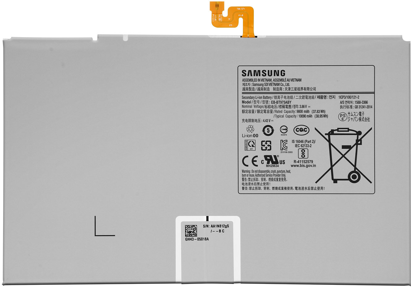 Batería para Samsung Galaxy Tab S7 Plus 12.4 Original Samsung con capacidad de 10090mAh Modelo EB-BT975ABY. Vuelve a disfrutar de la autonomía de cuando compraste el terminal, como el primer día.