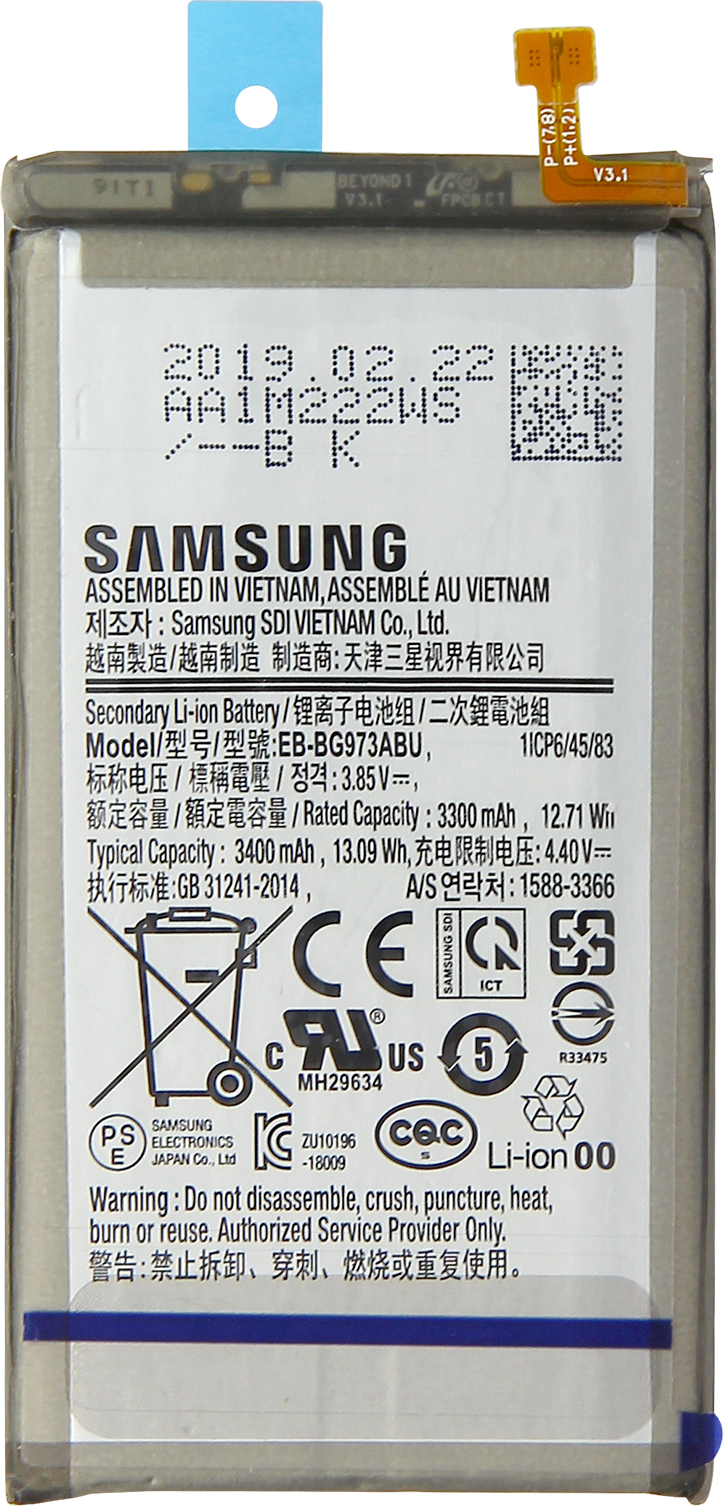 Batería original Samsung Galaxy S10, modelo EB-BG973ABU. Capacidad de 3400mAh. Perfecta para volver a tener la autonomía inicial de tu smartphone.